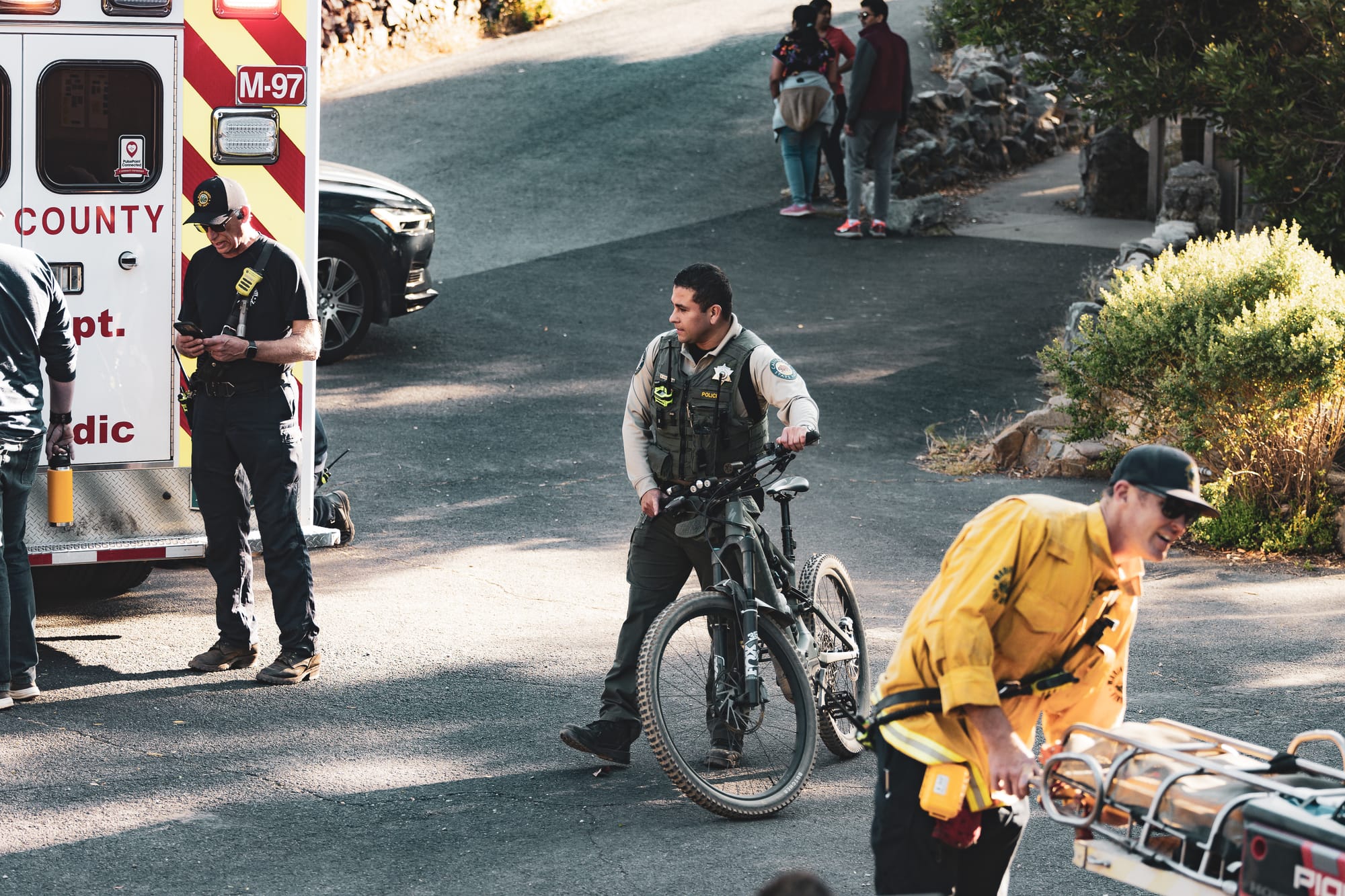 The above is a quick photo from the first few minutes we arrived at Mt. T. There appeared to be an accident involving a mountain biker, or a fire situation. I quickly took photos of how the fire service department existed in that period.